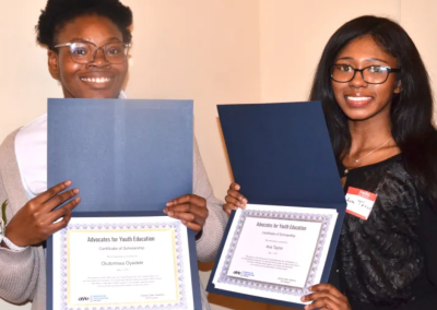 Advocates for Youth Education Incorporated is comprised of a predominantly African-American, but diverse membership of more than fifty professional women who are invited to join the organization and who agree to contribute to the scholarship fund annually, to support AYE’s core mission.